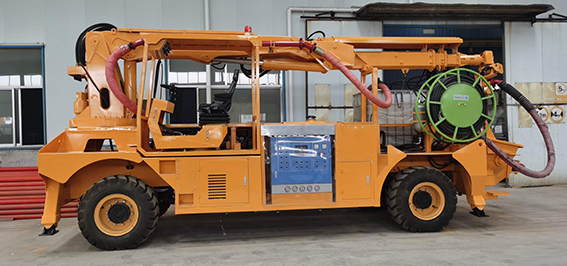 3、同步速凝劑添加采用進(jìn)口軟管泵,液壓馬達(dá)驅(qū)動,電比例流量閥調(diào)節(jié)轉(zhuǎn)速以達(dá)到調(diào)節(jié)流量的目的,液晶顯示和觸屏設(shè)置速凝劑添加比例,且在屏幕和器上均可隨時修改設(shè)置,速凝劑的添加量緊隨砼的泵送量同步變化而保持添加比例按設(shè)定值運(yùn)行,這些均由可編程控制器控制。由此可實(shí)現(xiàn)對速凝劑添加量的控制,以達(dá)到效果,回彈和節(jié)約速凝劑的目的。機(jī)器上配有容積為1.0m³的耐腐蝕塑料材質(zhì)的速凝劑容器,速凝劑軟管泵也可從外部容器中抽吸速凝劑,根據(jù)實(shí)際情況可方便地進(jìn)行切換。