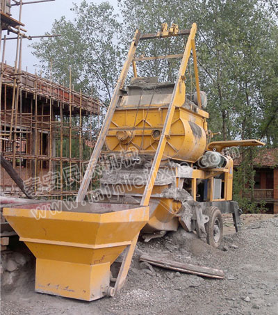 3.攪拌好的混凝土自動反轉出料到泵送料斗沿管道輸送到地點。